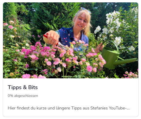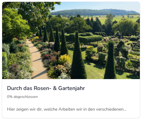 Das ist unser Basic-Einsteiger Paket. Alle tollen Inhalte sind für’s ganze Jahr und auch für die höheren Levels zugänglich. Videos und PDFs – alles rund um Rosen.